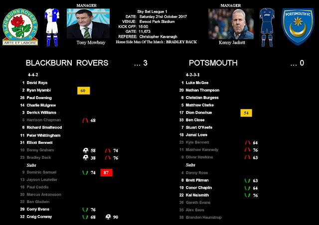 Dack did eventually open the scoring in the 38th minute when Harrison Chapman's fine pass found him in the Portsmouth six yard box to lash home Blackburn's first.